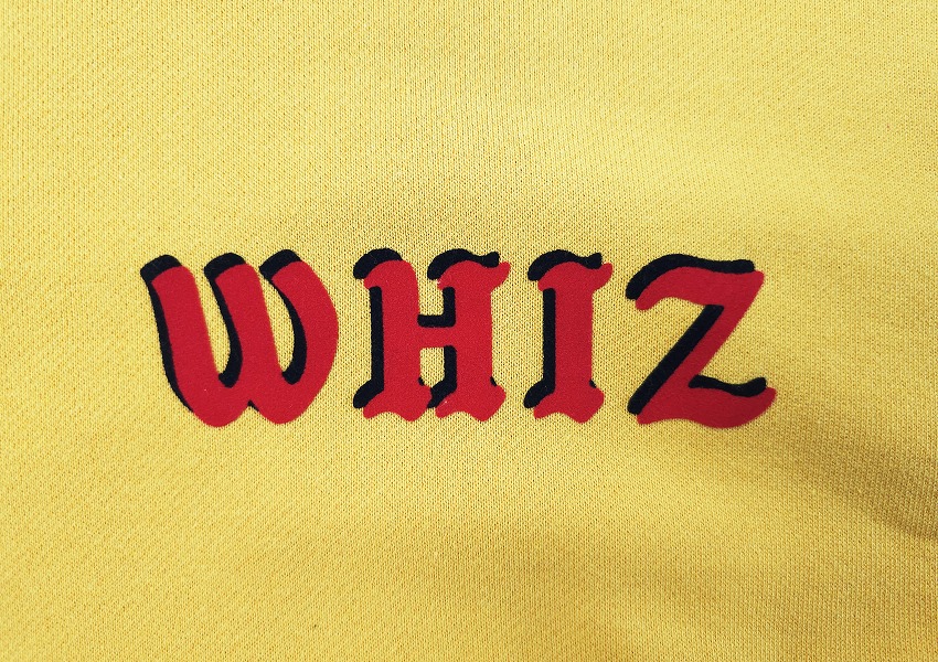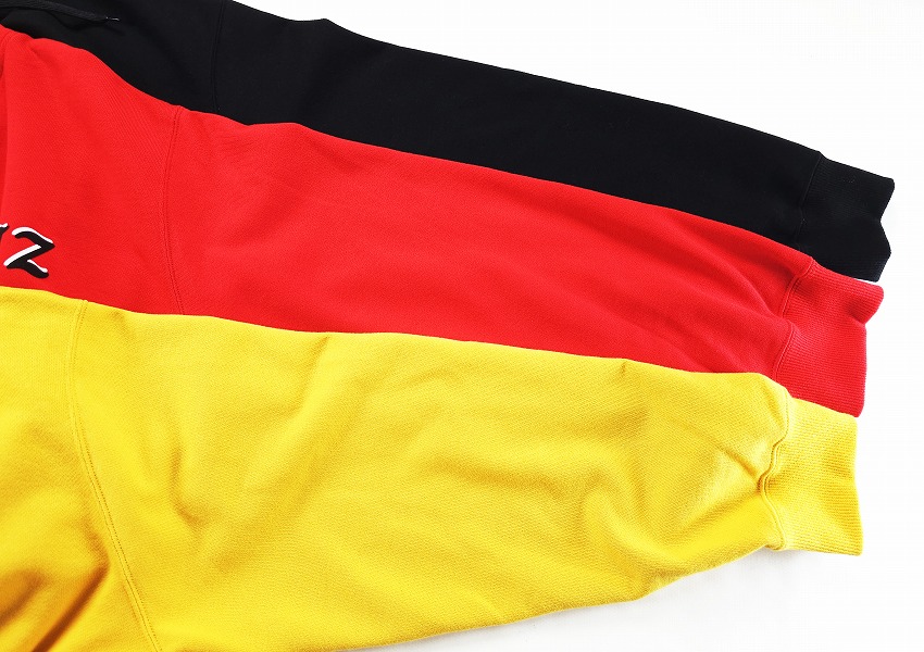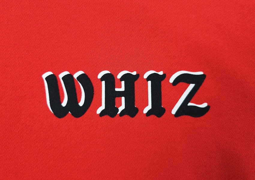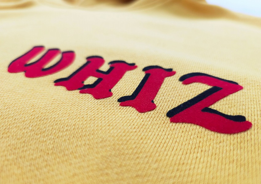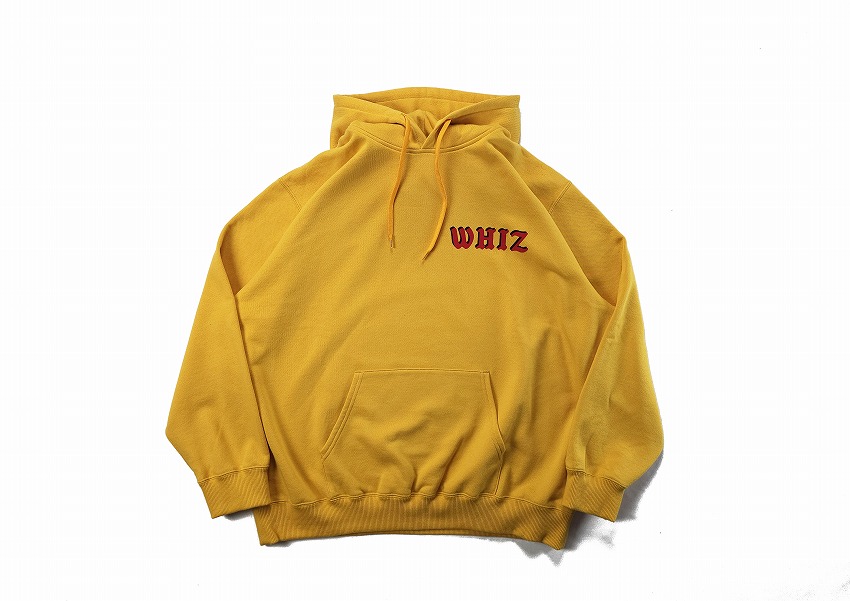 まず注目してしまう明るめのカラーはもちろん素敵!なのですがその生地ももっちり着やすくて最高なフーディー。マスタードにレッド、そしてブラックのどのカラーも気にある春の見逃せない一枚です。そんなメインカラーに身を包みたい春夏、こんなに明るい発色はなかなかありません。70-80年代の雰囲気あるイメージはフロッキーなのがまた最高。久しぶりなプリントのフロントは重ねて影を表現していますがこのクオリティにもご注目です。好きな方にはきっとここでまた技術や歴史に触れれるそんな一枚。フロントには左胸に、バックには大きく、そしてオリジナルコードの先にはWHIZLIMITED、などなどこだわりがこれでもかと詰め込まれた素敵で主役なフーディーをお見逃しなく。