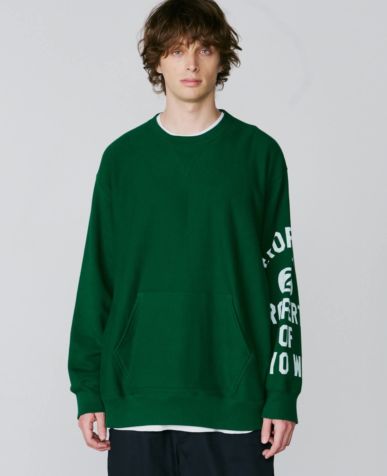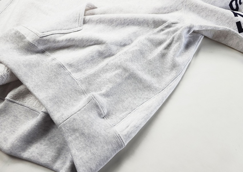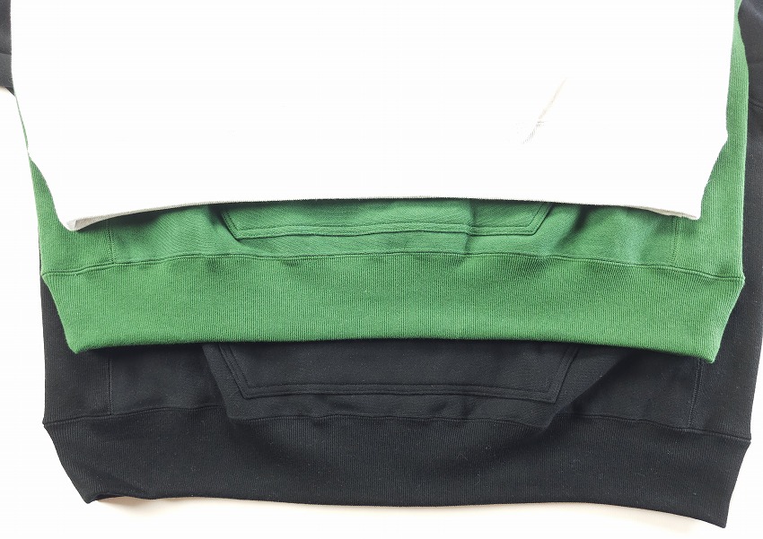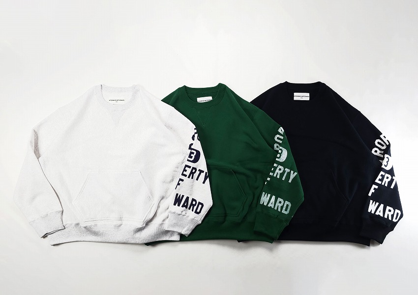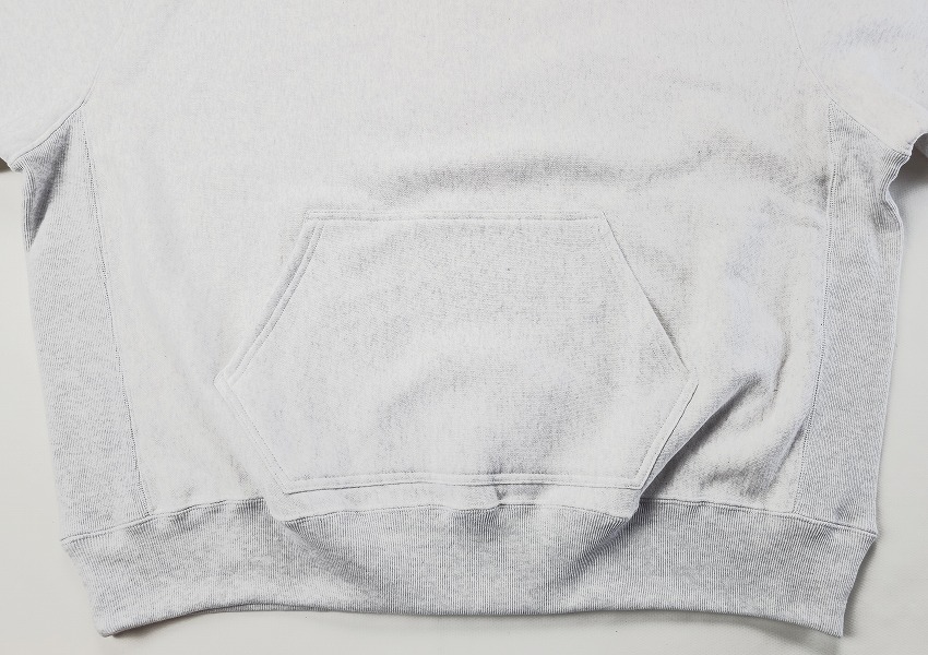 今シーズンのテーマ「BACKROOM」とくればチャンピオンリバースウィーブは必ず繋がります。「独特の生地の使い方と、あんまり意味をなしていないようなリブ使いが好き」まさに歴史と形、愛される理由がずっとあるスウェット。一言にカレッジ、といってもフロントでなく、左袖にぐるりとプリントが入る角度があるWHIZらしいクルーネック。ボリューム感やリブの雰囲気も最高なのですが、プリント具合が洗えば洗うほどに楽しそうです。そしてバックにはWHIZのサークルWが入ってどこかさらに懐かしく。そしてカンガルーポケットがついているのもにくい仕上がりになったあの時代のスウェットいいとこいっぱい、な見逃しない一枚です。クルーネック好きな方は是非チェックを。