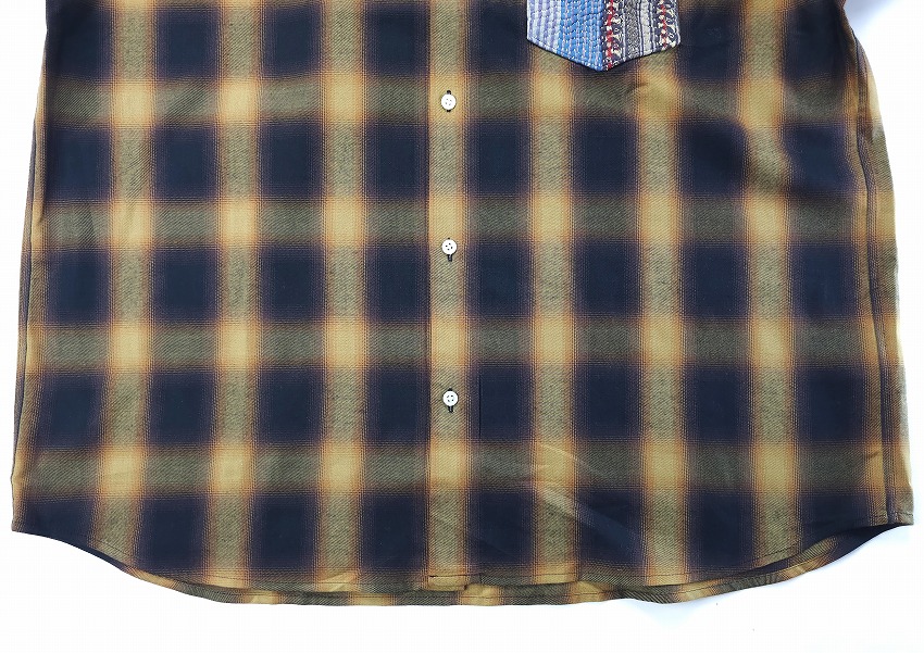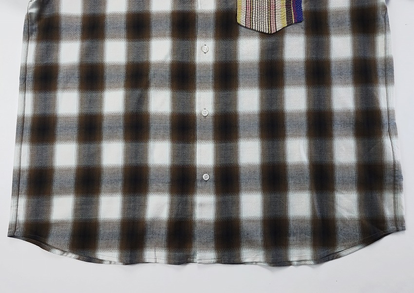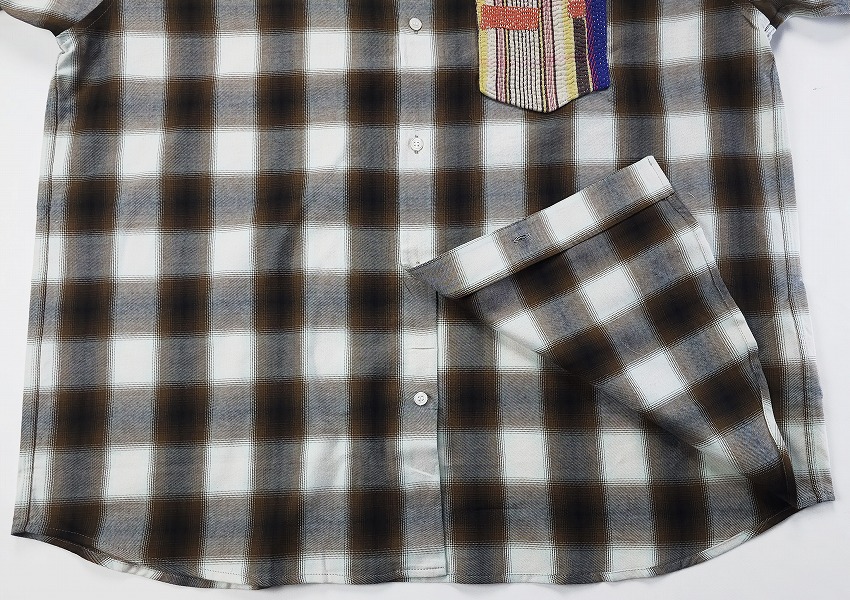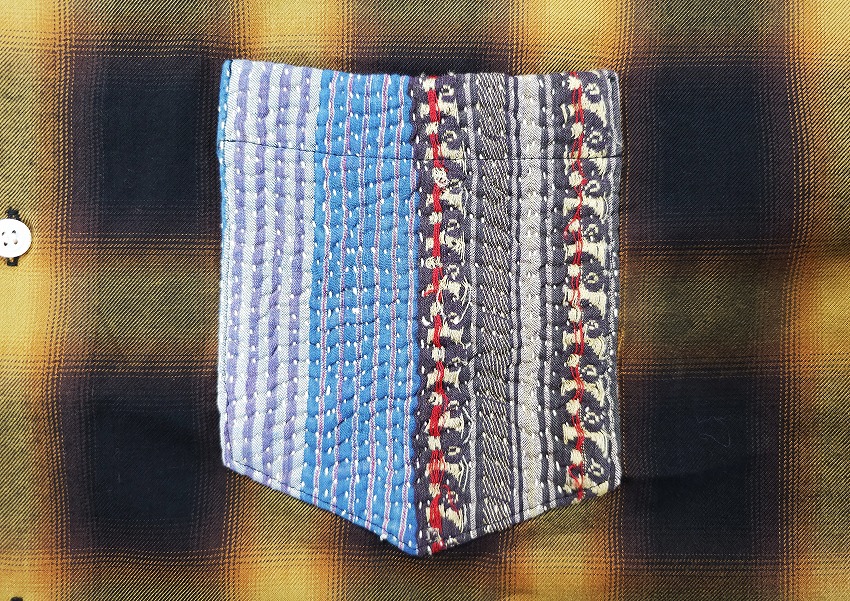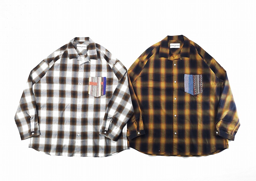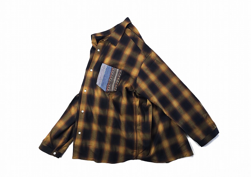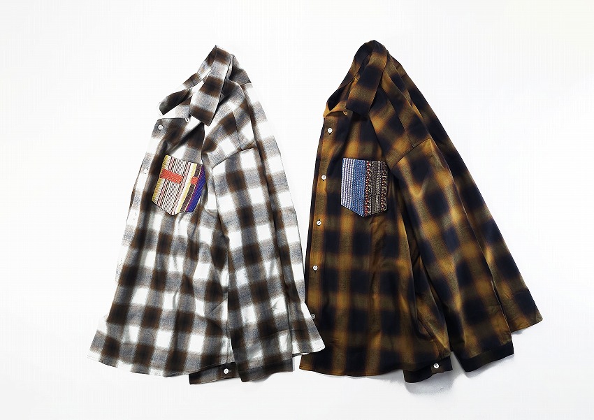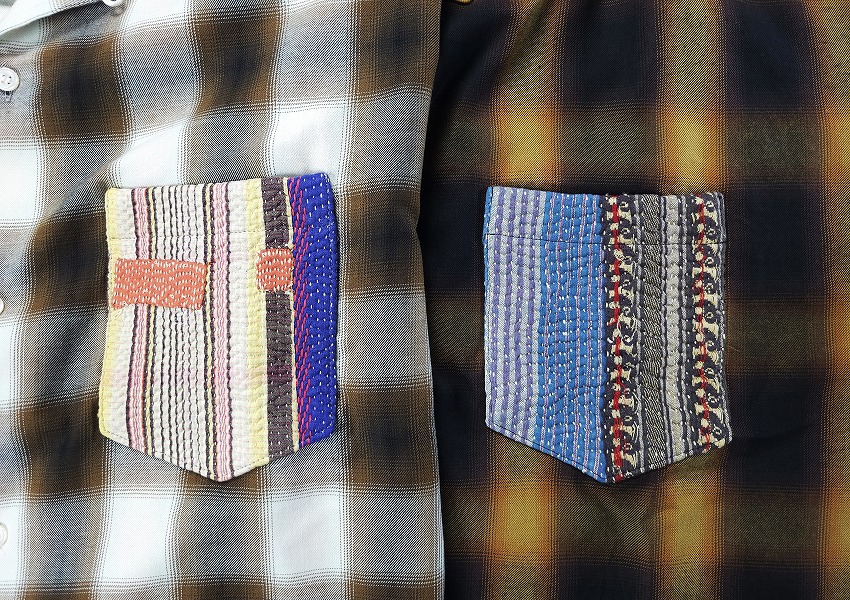 BACKROOMにきっと皆が持ってるチェックシャツ。そしてオンブレシャツは永遠の定番。特にWHIZのボケシャツには思い出もいっぱいです。丁度良いチェックって中々見つからない中でこの絶妙なブラウン(×ホワイト)とブラック(×ブラウン)はすぐに着て飛び出せるジャケットの中にも最高な一枚。この数年やたらシャツが気になってしまうのは年齢なのかもしれませんがワードローブに何種類あっても楽しいですね。着やすい形のWHIZのチェックシャツはいつも要チェックなアイテム。ポイントとなる左胸ポケットにはヴィンテージのカンタ刺繍(インドの手仕事の極み)の入ったパッチワーク生地を使用しています。そんなパッチワーク生地の柄はランダムなので一期一会を楽しんでください。ジャケットやパンツの裾と合わせても素敵です。