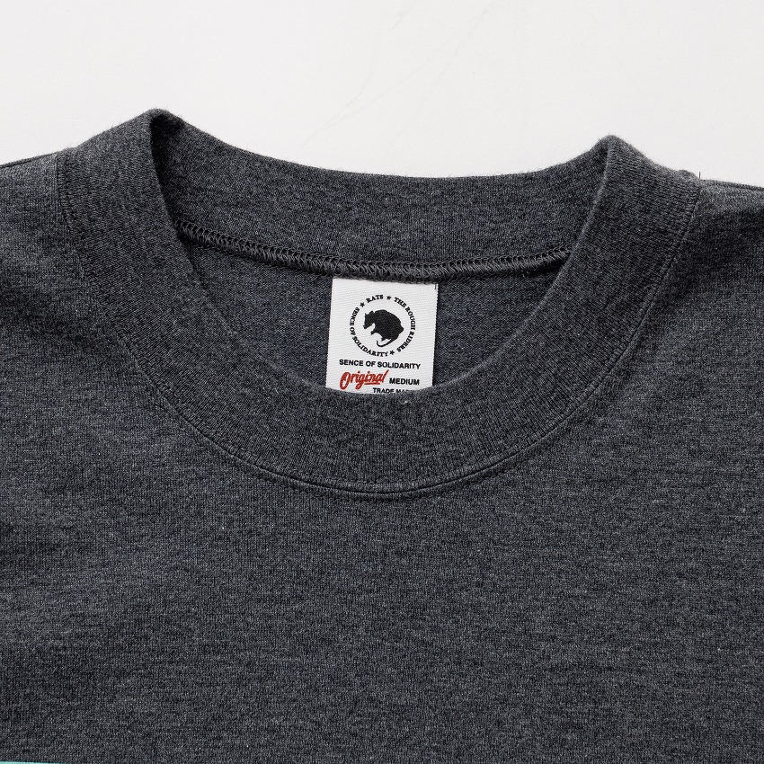 8.5oz.のコットン天竺素材を使用したL/S TEE。フロントにオリジナルグラフィックをラバープリントで表現したデザイン。背面左脇にRatモチーフのワンポイント刺繍。ロックネック仕上げ。レギュラーフィットシルエット。