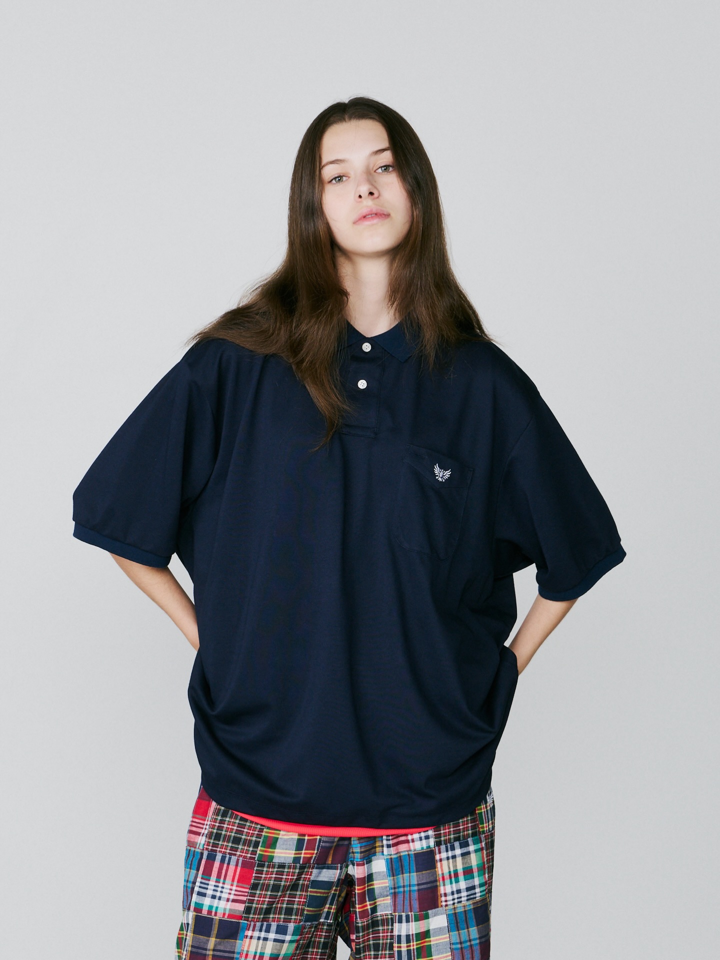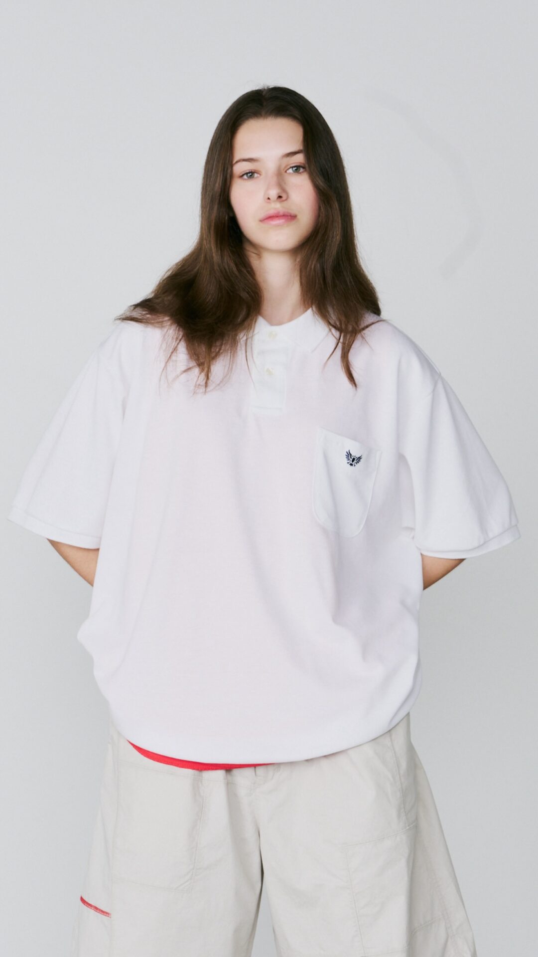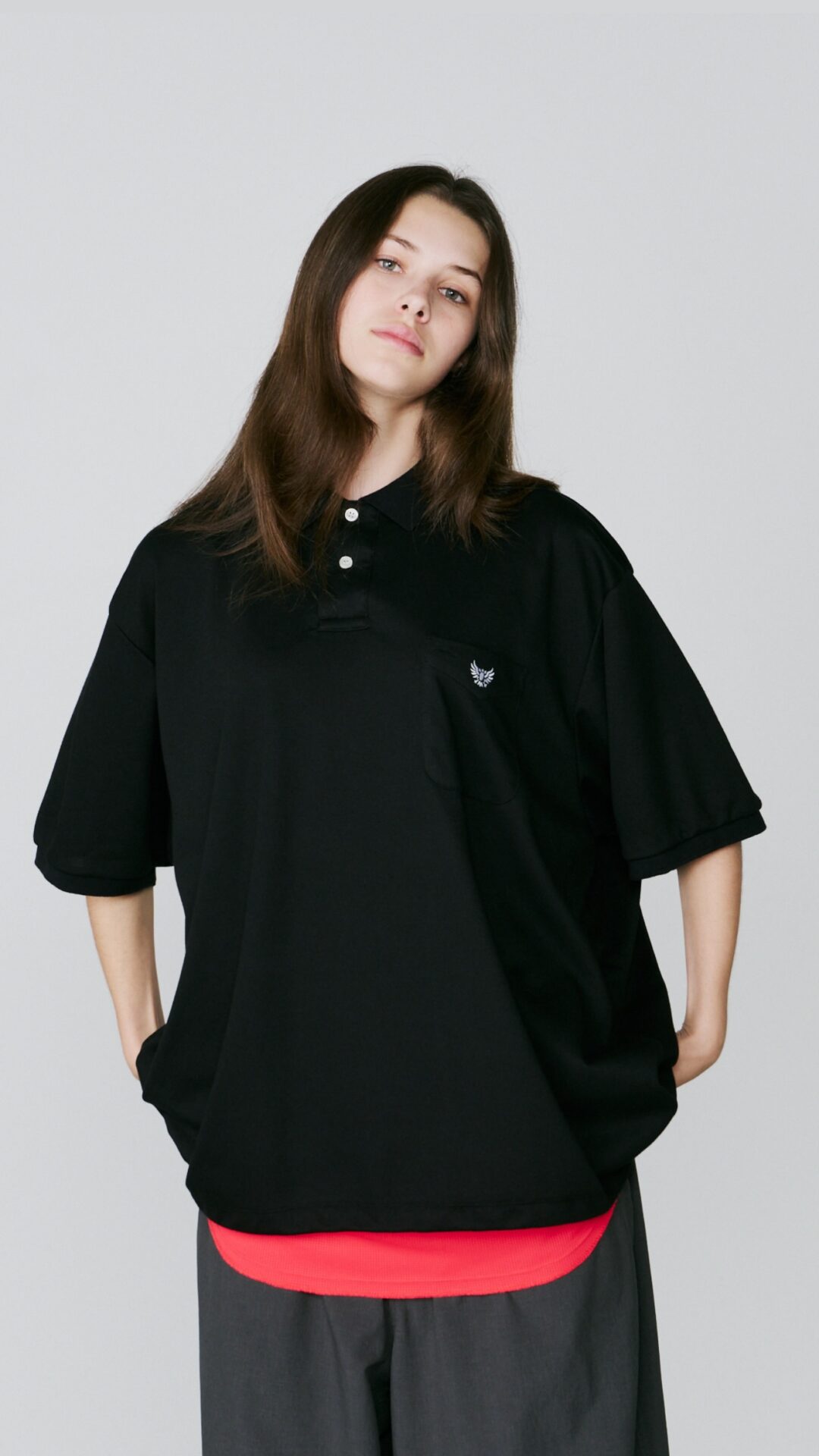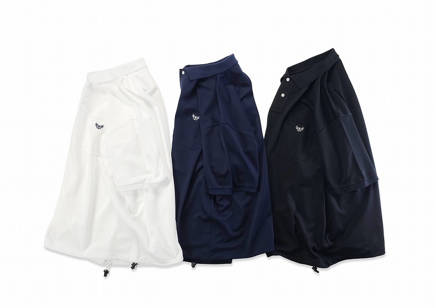 勝手にこの夏の大注目アイテムのポロシャツ。特にこのWHIZのが一番すきなのですが理由は形とデザイン。ワイドでビッグなシルエットで涼しくて裾にはドローコードなシリーズ。そんな新作のポロシャツなんです。一見シンプルなポロシャツですが、表面にコットン、裏側にポリエステルがくるようにまれた鹿の子素材。裏側にポリエステルを編み込むことにより、吸水速乾性、透湿性を実現。ビッグなシルエットはシンプルながらドローコードで好きなシルエットを作れます。いつも夏はお世話になってるドローコードシリーズ、昨夏はこれしか着てなかった気もします。それくらい大好きな印象ですのでそりゃおすすめな訳です。ちょっとしたアクセントにも大人なストリートにも使えるハイテクポロシャツです。これもインナーのカラーを選ぶのが楽しそうな一枚です。胸にはデザインポケットにイーグル刺繍、きっと着てもらえば伝わる良さをどうぞお楽しみくださいね。