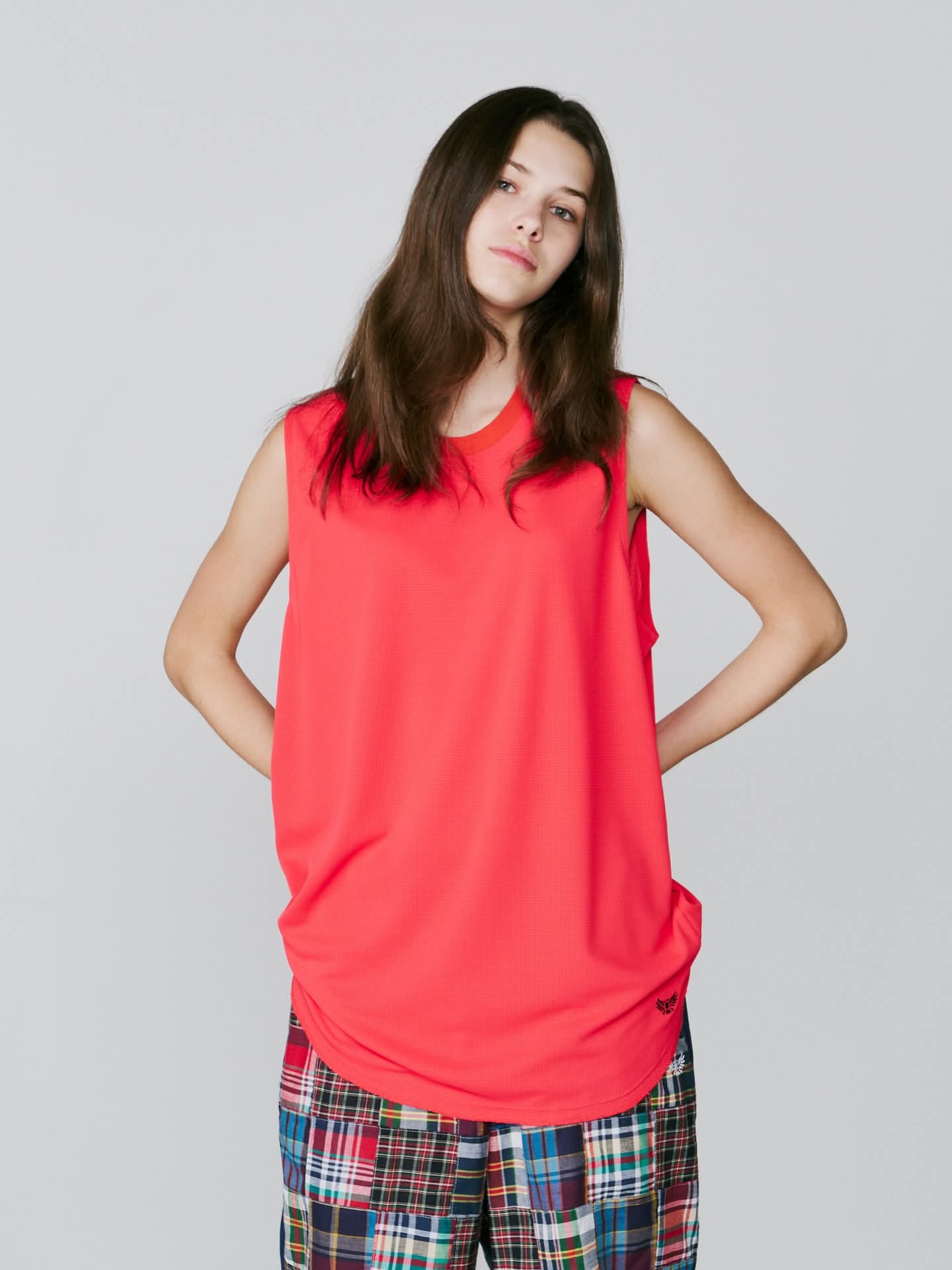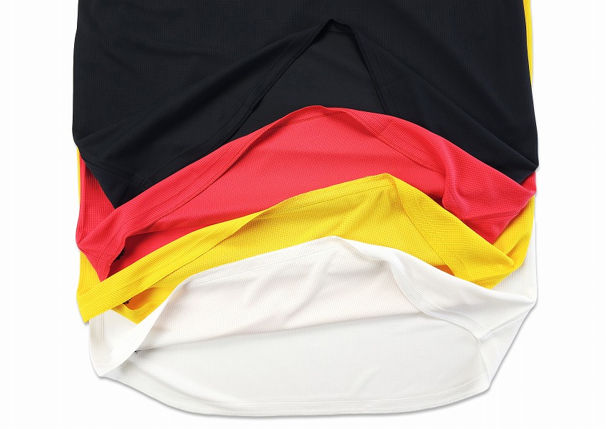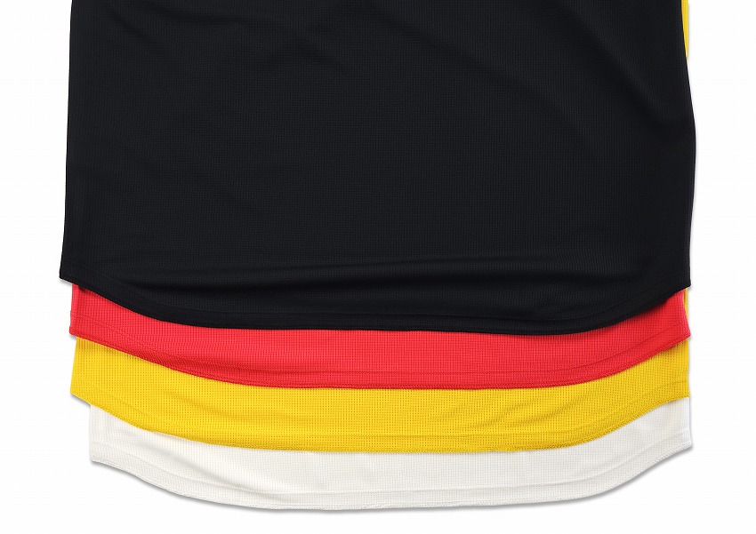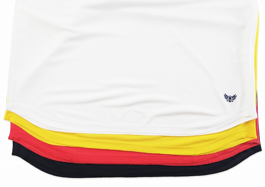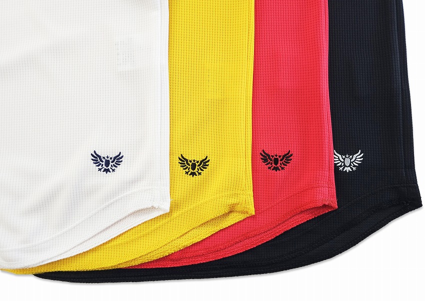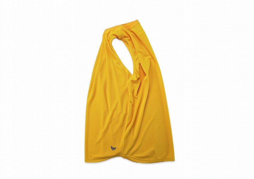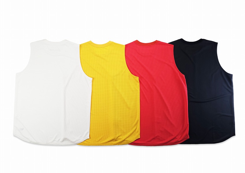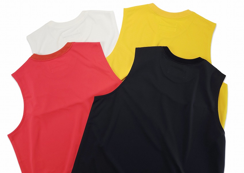 お待たせしました!WHIZの必須アイテムの筆頭と言えばノースリーブことスリーブレスシャツ。裾からちょっと出る着丈と機能性はいつも言ってますが特に思い入れが強いアイテム。レイヤードで裾から出すスタイルはもうずっと自分の定番中の定番。新作は発色も最高なイエローとレッドが登場、素材にこだわったCOOLMAX EcoMadeファイバーで。吸水速汗、 紫外線防止機能、生地感も着心地も長さも最高。おなじみの着丈が長さでシンプルになりがちな夏のTシャツもレイヤードスタイルでより楽しく。サラッとしたメッシュ感の着心地でさら酷暑に必須となりました。これさえあれば快適なことこの上なし。発色が明るめの上記2色は見逃せないとして、結局ホワイトのこの生地なんて便利な事この上なし、そしてブラックも久しぶりに合わせる幅がありそうで…どれもあとから必要になるであろうシリーズ。要は全色必須シリーズ、どうぞお見逃しなく。初めての方、未体験の方はこれさえあればWHIZの夏が始まりますのでご安心。さらにしっかりした首回り、そして長さをしっかり楽しめる丈感、どうぞお試しください。夏をさらに快適に楽しみましょう。