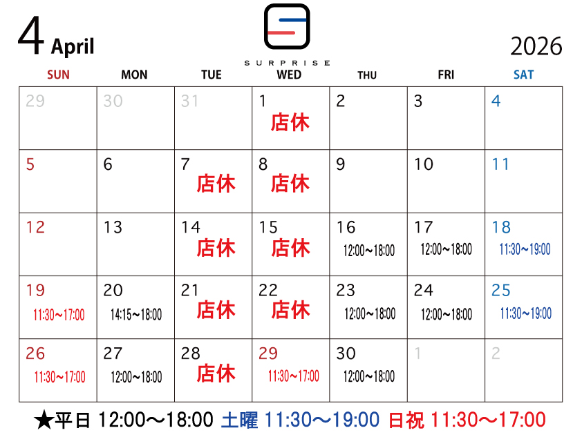 日曜日は11:30~17時の営業時間となります。