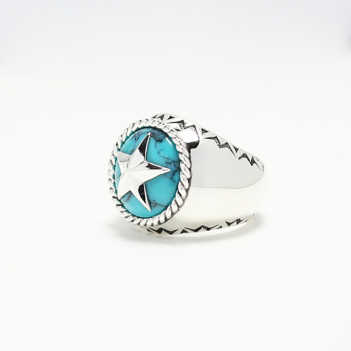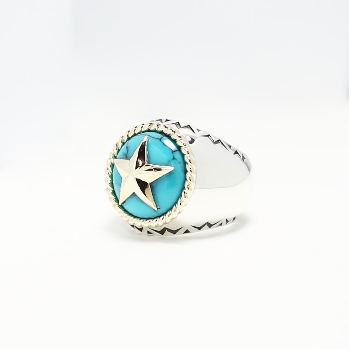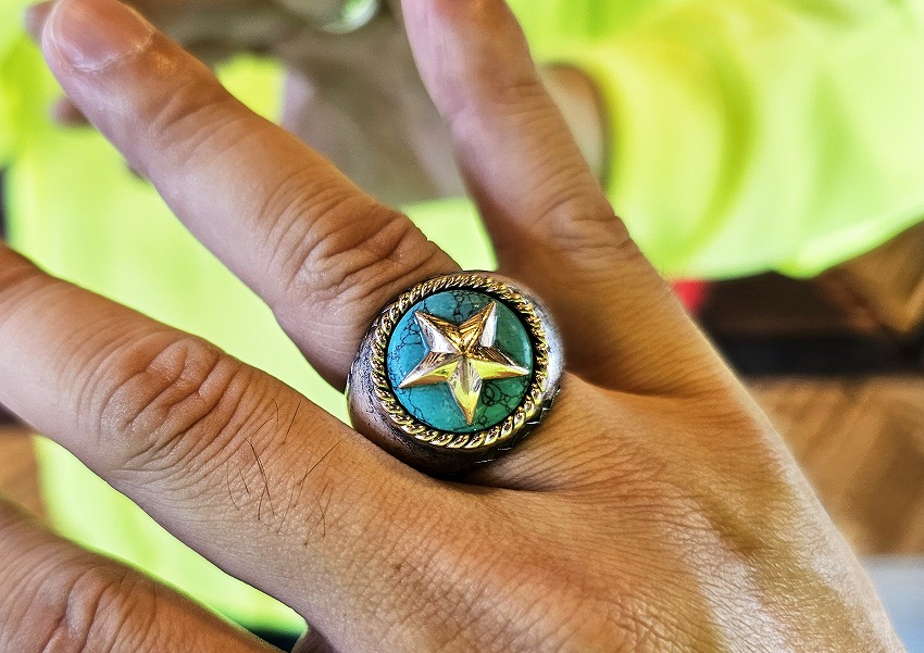 シルバー×ターコイズのスターリングはWHIZLIMITEDらしさあふれるリング。ツイストとスター、WHIZらしさを代表するデザイン。刻印と誕生石も入るまさに一生ものをどうぞお見逃しなく。