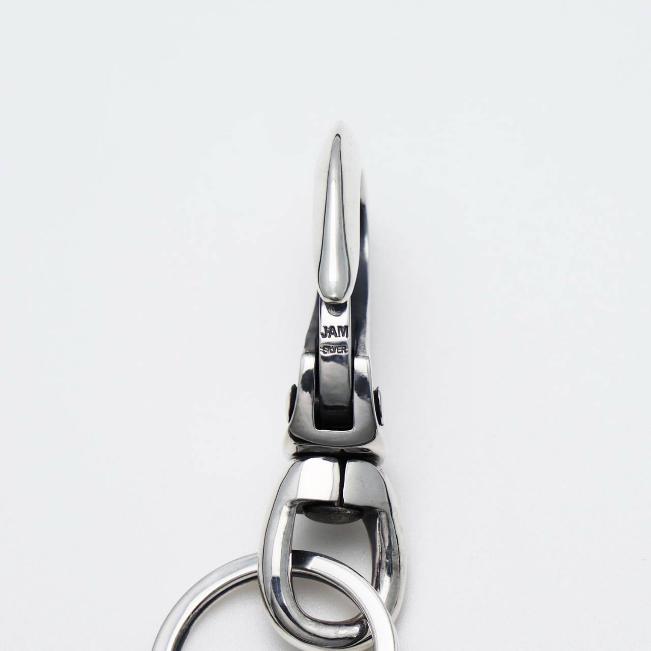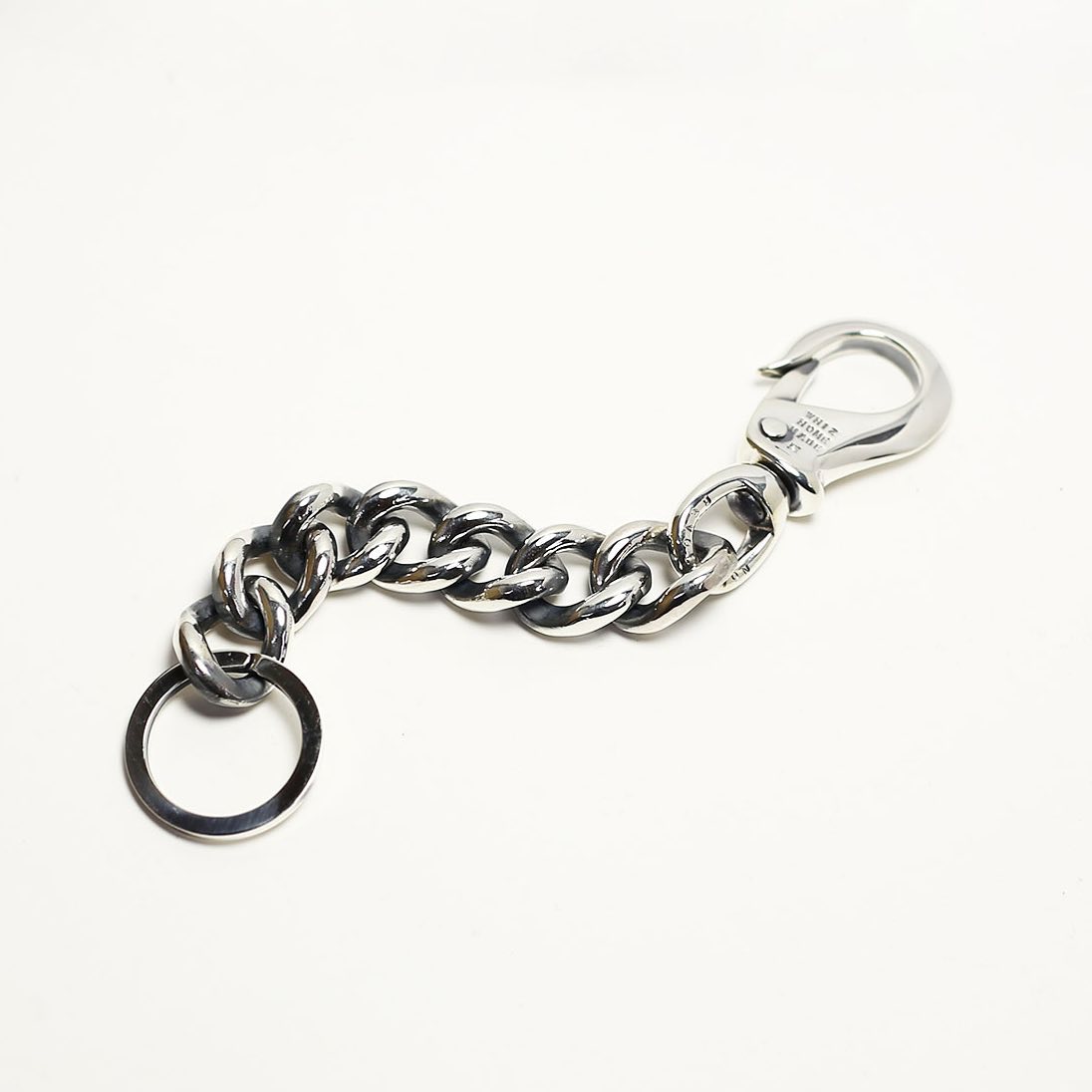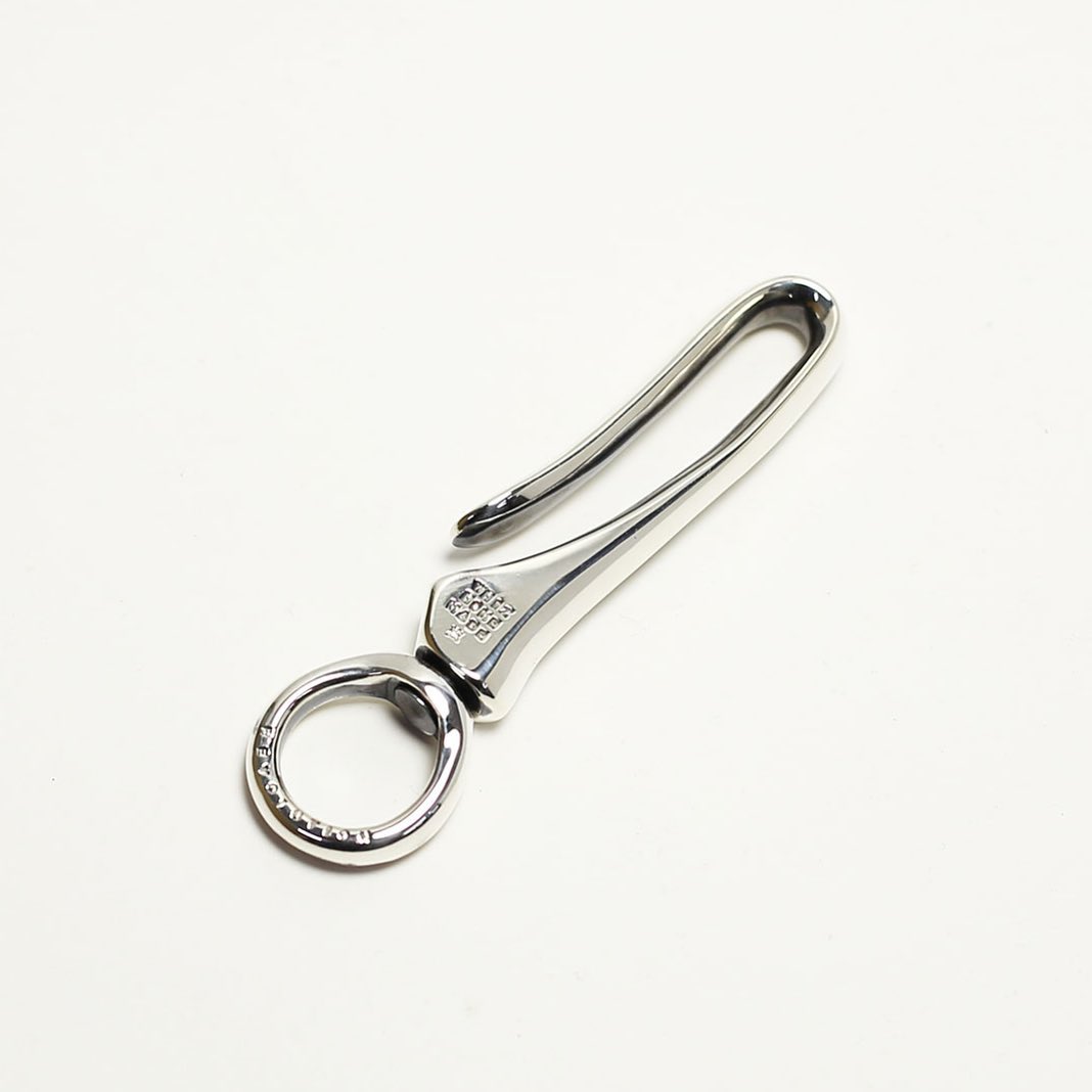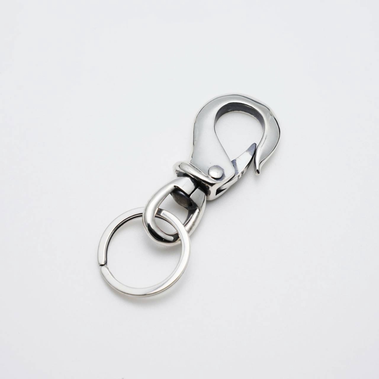 単体でもチェーンやフックと組合わせて使える腰回りの定番キーホルダー。前でも後ろでも、ベルトループに付けるだけで楽しくしてくれるでしょう。フックとリングのシンプルな作りですがだからこそ不変の良さがあります。