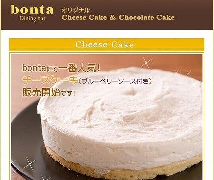甘いものをそこまで食べません。でも「チーズケーキ」って子供の時の給食に出てるときから好きです。そんなチーズケーキをインターネット販売 開始です。これうまいっすよ。 BONTA 特製のチーズケーキ 。ブルーベリーソースが良く合います。 超気合...